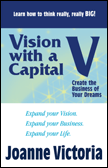 If you are dissatified with $ results and fear change, stop grasping at straws and get 'Vision with a Capital V - Create the Business of Your Dreams' now! Think Lance Armstrong, Trump or Martha. Their future visions helped them expand their business beyond a marketing plan or promotion. Keep ideal clients, maek decisions easily and expand like the rich and famous. Answer Joanne's interview questions to tell the truth. I loved this book. It's THE one we should read to be the best business we can be." Judy Cullins, Author, Power Writing for Websites that Sell